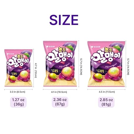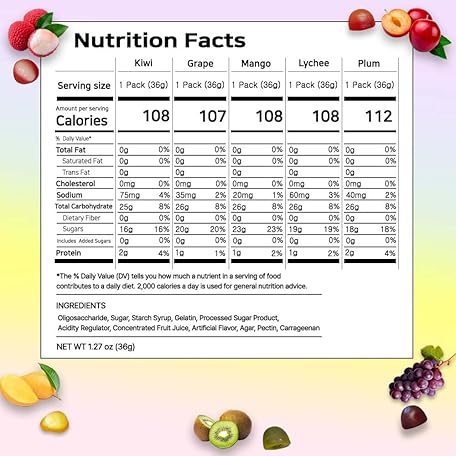 • Korean Fruit Jelly Candy – Assorted Chewy Gummy Snacks – 5 Fruity Flavors (Grape, Plum, Lychee, Kiwi, Mango) – Individually Wrapped – Perfect for Kids & Adults (5 Flavor Mix–1.26oz(36g) × 5pack)