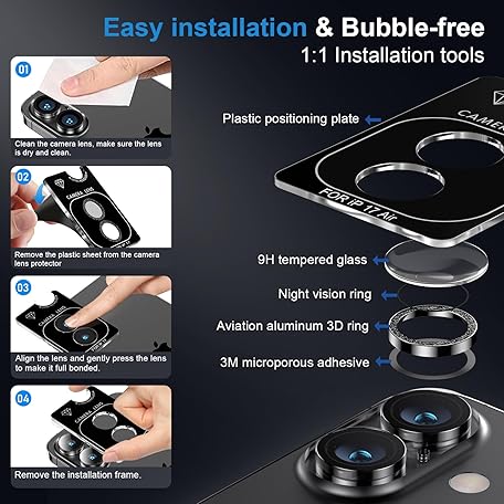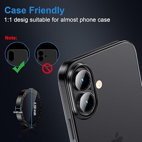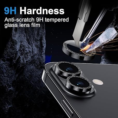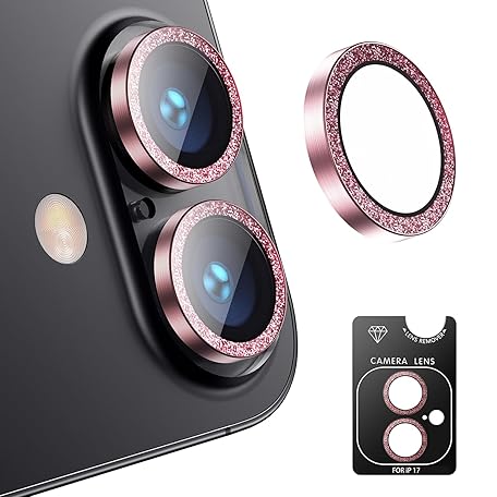 Korecase for iPhone 17 /iPhone 16 /iPhone 16 Plus Camera Lens Protector, Glitter Bling Aluminum Alloy Metal Ring, 9H Tempered Glass Anti Scratch Camera Screen Protector Accessries (Glitter Pink)