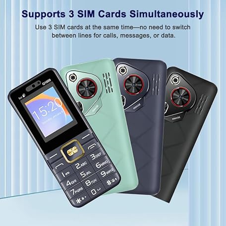 KostSell Unlocked Senior Cell Phone, Big Button 3 SIM Senior Phone, Easy to Use Mobile Phone with Large Capacity Battery, Flashlight, Voice Recorder, Calendar, Alarm Clock, Calculator (Dark Blue)