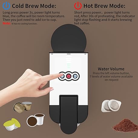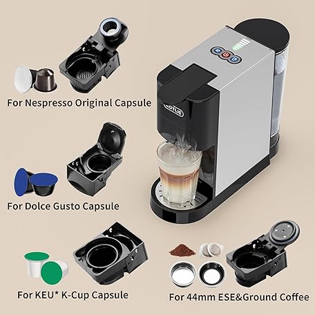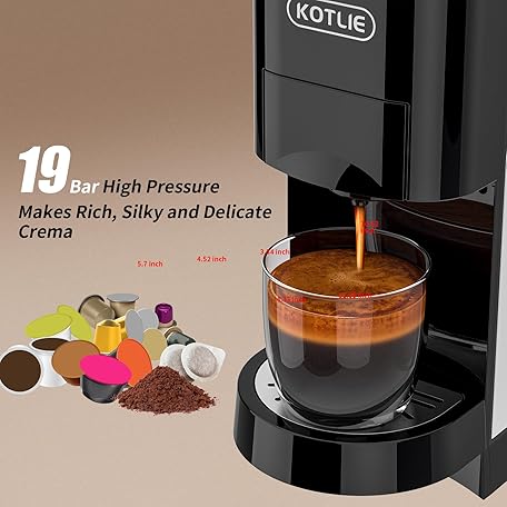 Thông tin sản phẩm KOTLIE 19Bar Single Serve Coffee Maker, 5in1 Espresso Machine for Keu* kcup Capsules/Nespresso Original/Dolce Gusto/Ground Coffee/44mm ESE, Level 7 Water volume, Hot&Cold Brew Coffee Machine