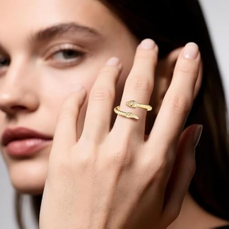 KOVELYSSE Snake Ring Adjustable Rings For Women 925 Sterling Silver Hypoallergenic Adjustable Open Rings for Women Jewelry