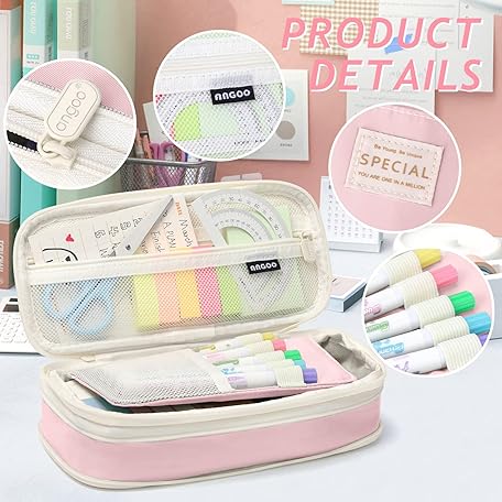Sản phẩm KPX Big Capacity Pencil Pen Case Bag with Zipper Office College School Storage Large Capacity Bag Pouch Holder Box Organizer Colorful (Pink) đang được bán với giá ưu đãi là $5.1339 tại nước Mỹ.