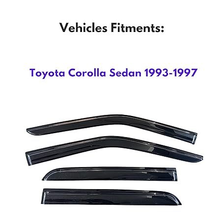 • KPY Rain Guard Compatible with Toyota Corolla Sedan 1993-1997, 4PC Window Visor Side Window Vent Deflectors Tape-On Mugen Style, 1993 1994 1995 1996 1997