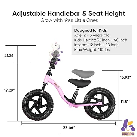 Thông tin sản phẩm KRIDDO Toddler Balance Bike 2 Year Old, Age 24 Months to 5 Years Old, Early Learning Interactive Push Bicycle with Steady Balancing, Gift Bike for 2-5 Boys Girls, Purple