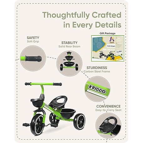Thông tin sản phẩm KRIDDO Tricycles Age 24 Month to 4 Years, Toddler Kids Trike for 2.5 to 5 Year Old, Gift for 2-4 Year Olds , Green