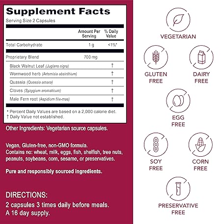 Thông tin sản phẩm Kroeger Herb Products, Wormwood Herb, Black Walnut, Clove, Quassia, Worm Wood Detox Cleanse - Vegetarian Capsules, Non-GMO, Gluten Free, No Preservatives or Fillers - 100 Capsules, Made in USA
