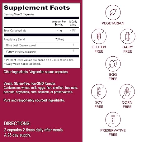 Thông tin sản phẩm Kroeger Herbs, Olive Leaf Extract Capsules for Immune System, Olive Leaf & Yarrow Supplement, Vegetarian, Non-GMO, Gluten Free, No Preservatives - 100 Capsules, Made in USA
