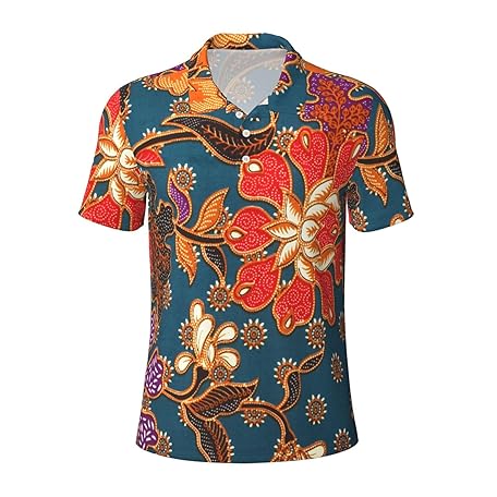 Kruihfd Malaysian and Indonesian Batik Men's Polo Shirts Quick Dry Short Sleeve Golf Polo Shirt
