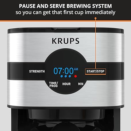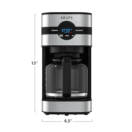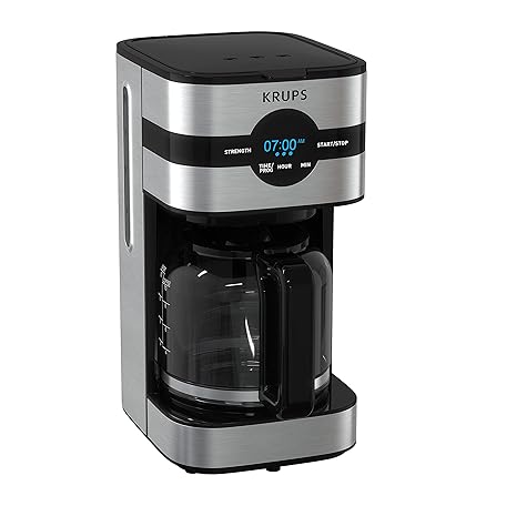 Thông tin sản phẩm KRUPS Simply Brew Stainless Steel Drip Coffee Maker 10 Cup 900 Watts Digital Control, Coffee Filter, Drip Free, Dishwasher Safe Pot Silver and Black