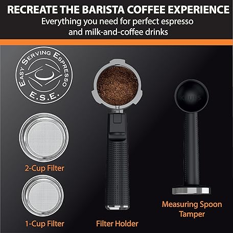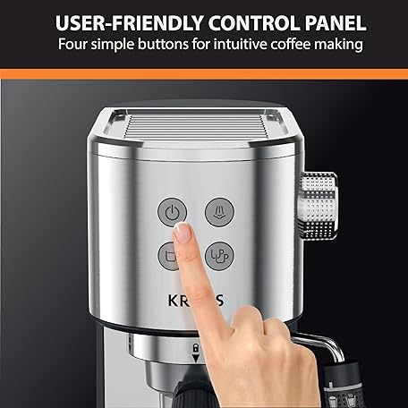 Thông tin sản phẩm KRUPS Stainless Steel Espresso Machine: 15-Bar Pump Pressure, Milk Frother for Cappuccino and Latte, Fast Pre-Heat, 2-Cup Capacity, Cup Warmer, Easy Cleaning, 1350W, Silver