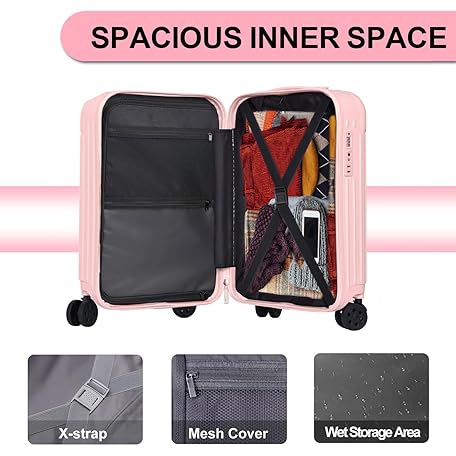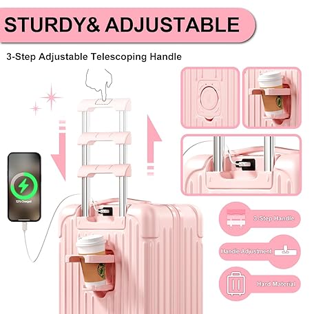 Sản phẩm Krute Carry on Luggage 20 Inch USB Suitcases with Spinner Double Wheels Cup Holder PC+ABS Hardside Luggage with TSA Lock (Pink) đang được bán với giá ưu đãi là $141.6891 tại nước Mỹ.