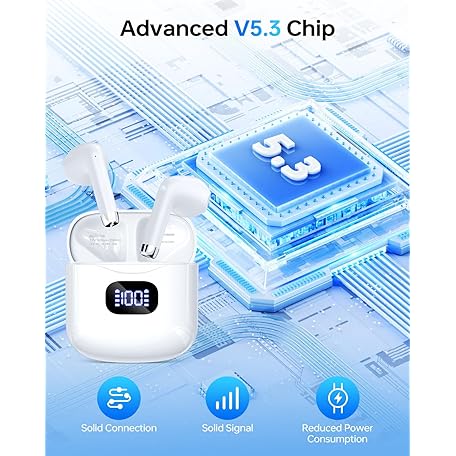 Thông tin sản phẩm KTGEE Wireless Earbuds Bluetooth 5.3 Headphones, 40Hrs Playback Stereo Ear Buds with LED Display Charging Case IPX7 Waterproof in-Ear Earphones with Mic for Phone Tablet Laptop Sports, White