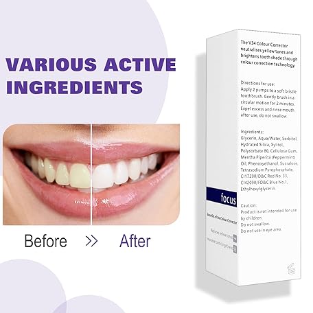 Thông tin sản phẩm Purple Toothpaste for Teeth Whitening, Teeth Whitening Toothpaste, Tooth Stain Removal, Tooth Stain Removal Colour Corrector - 1 Fl Oz (Pack of 1)