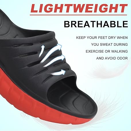 KuaiLu Mens Recovery Sandals Orthotic Thick Cushion Open Toe Sport Slides With Comfortable Plantar Fasciitis Arch Support, Reduces Stress on Feet, Joints & Back Post-Exercise