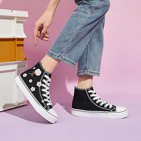 Sản phẩm kufeiti Women's High Top Canvas Sneakers Canvas Shoes Lace up White Black Sneakers Casual Walking Shoes đang được bán với giá ưu đãi là $22.6611 tại nước Mỹ.