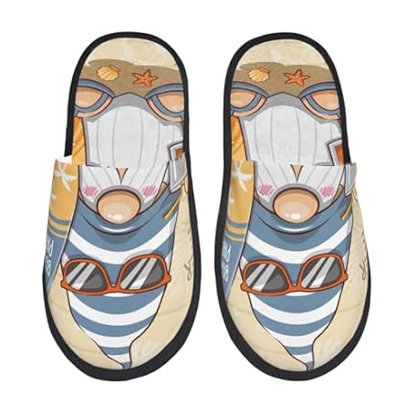 Kuilepa Hello Summer Cute Gnome Print Women'S Fuzzy Slip On Indoor Outdoor Winter House Slippers