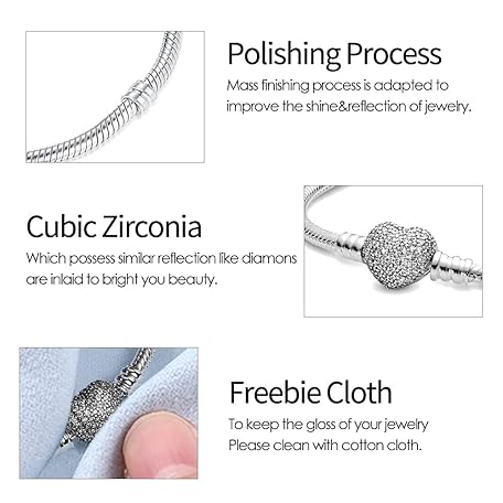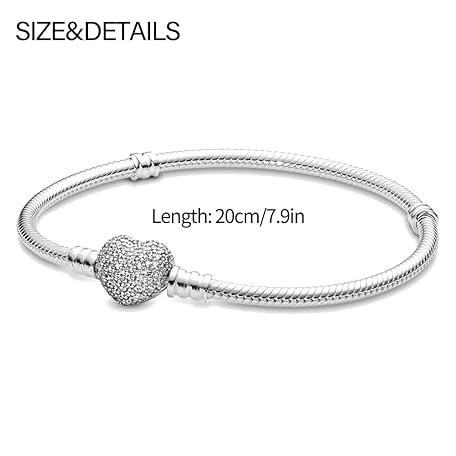 • KUNSIR Snake Chain Charm Bracelets for Charm 925 sterling silver Jewelry Bracelet Fits Any Charm Gift for Women