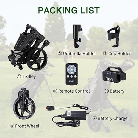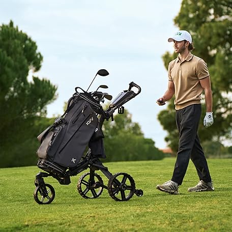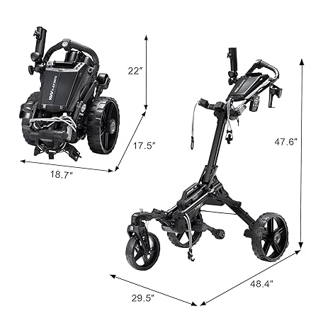 KVV Electric Golf Push Cart with Remote Control, Super Compact and Lightweight Electric Golf Cart,Smallest Folding Size Electric Golf Cart, Suitable for All Terrains, and (Charcoal)