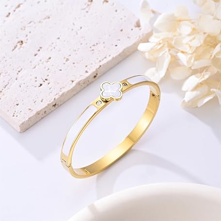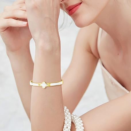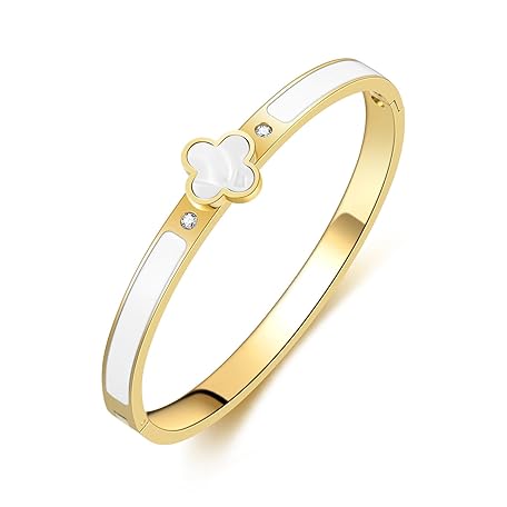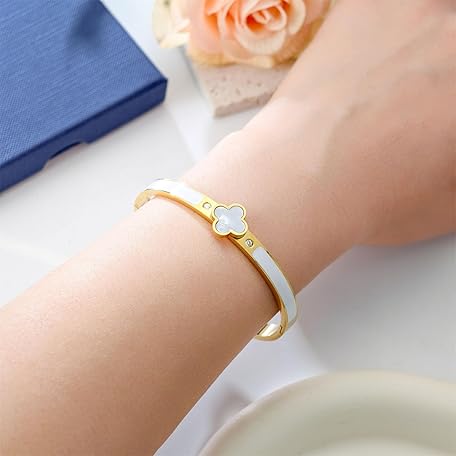 Sản phẩm KYJAC 18k Gold Plated Stainless Steel Four Leaf Clover Bracelet for Women - Non-Tarnish, Precision Polished Chunky Oval Bangle in Black, White, Pink, Red Clover Bangle đang được bán với giá ưu đãi là $12.8293 tại nước Mỹ.