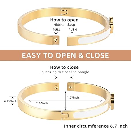 Thông tin sản phẩm KYJAC 18k Gold Plated Stainless Steel Four Leaf Clover Bracelet for Women - Non-Tarnish, Precision Polished Chunky Oval Bangle in Black, White, Pink, Red Clover Bangle