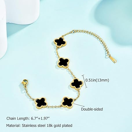 KYJAC Clover Bracelet Love Bangle Stack Set 18K Gold Plated Four Leaf Clover Bracelet Black and White Simple Cute Friendship Bangle Bracelets for Women Trendy Holiday Gifts