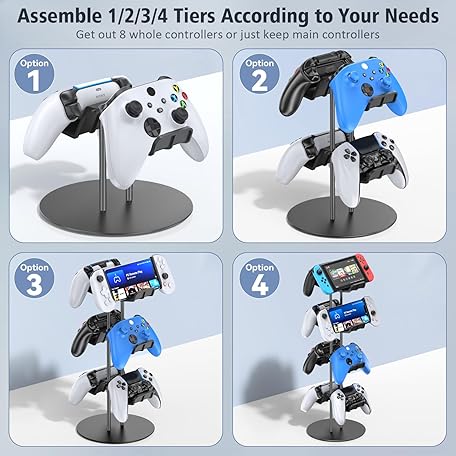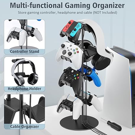 Thông tin sản phẩm Kytok Controller Stand 4 Tiers with Cable Organizer for Desk, Universal Headphone Stand Compatible with Xbox PS5 PS4 Console Nintendo Switch, Headset Holder & Desk Mounts for 8 Packs Controller