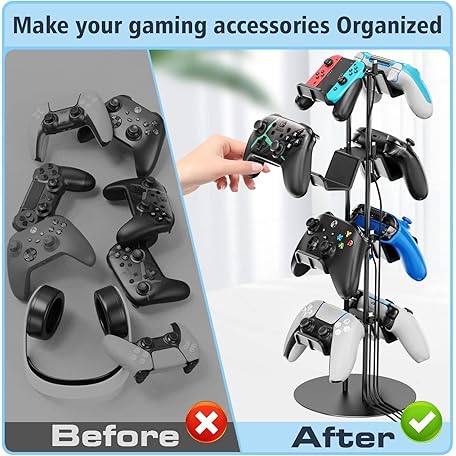 Sản phẩm Kytok Controller Stand 4 Tiers with Cable Organizer for Desk, Universal Headphone Stand Compatible with Xbox PS5 PS4 Console Nintendo Switch, Headset Holder & Desk Mounts for 8 Packs Controller đang được bán với giá ưu đãi là $18.5191 tại nước Mỹ.
