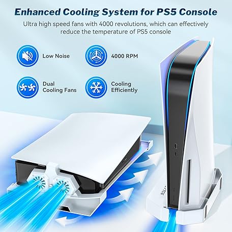 Sản phẩm Kytok PS5 Stand & Cooling Fan for Disc & Digital Editions, Horizontal & Vertical Stand with Cooler for Playstation 5 Console đang được bán với giá ưu đãi là $21.7891 tại nước Mỹ.