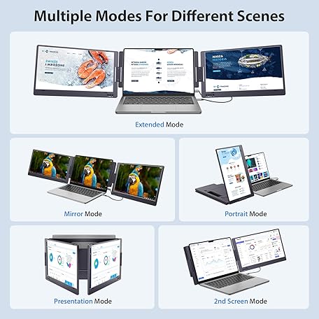 Thông tin sản phẩm KYY Triple Laptop Monitor Extender, 14" 1080P FHD IPS Dual Portable External Screen, One Cable USB C Travel for 12-16'' Laptop, 210°Rotation & Kickstand, (Space Gray)