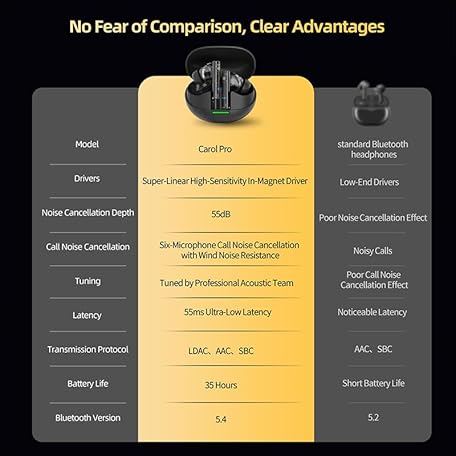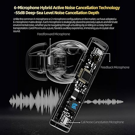 KZ Carol Pro True Wireless Earbuds, ANC 6 Micros TWS Earphone, Bluetooth 5.4 Iems, HiFi Sports in-Ear Headphone, LDAC Support