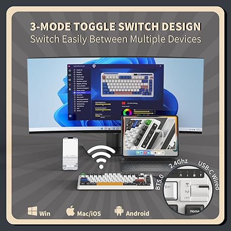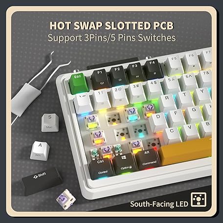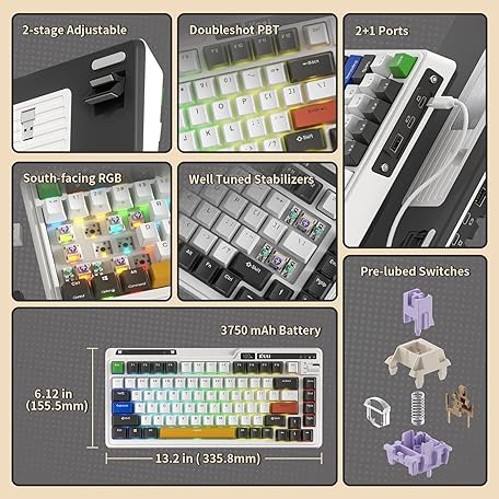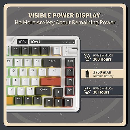 Thông tin sản phẩm KZZI K75 PRO RGB 75% Wireless Gasket Mechanical Keyboard, Triple Mode BT5.0/2.4G/USB-C 82 Keys Hot Swappable Gaming Keyboard w/Knob & Power Display, Custom Tactile Switches, Black White