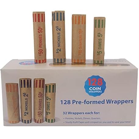Thông tin sản phẩm L LIKED Preformed Coin Wrappers Rolls (128 Assorted) - Quarters, Pennies, Nickels and Dimes