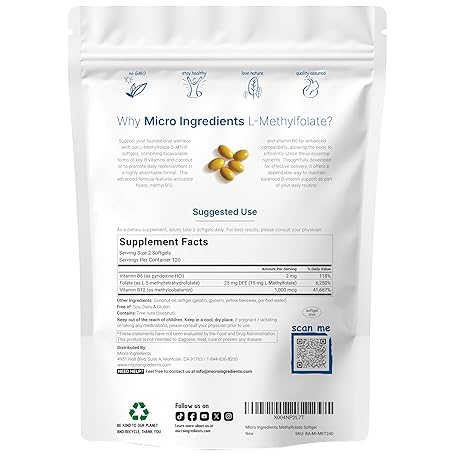 Thương hiệu Micro Ingredients là cái tên nổi tiếng được rất nhiều khách hàng trên thế giới chọn lựa. Với kiểu dáng đẹp mắt, sang trọng, sản phẩm L Methylfolate 15mg with B6 Plus Methyl B12 | 240 Softgels with Coconut Oil | Highly Bioavailable 3-in-1 Methylated Multivitamin | Vitamin B Complex + Active 5-MTHF & Methylcobalamin là sự lựa chọn hoàn hảo nếu bạn đang tìm mua một món cho riêng mình.