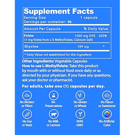Thông tin sản phẩm L Methylfolate 1mg | 180 Capsules | Optimized & Highly Bioactive Methyl Folate Supplement | 5-MTHF Supports for Energy, Focus & Mood | Non-GMO, Gluten Free, Vegan | 6 Month Supply