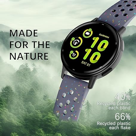 Laband 20mm Colorful Sport Silicone Watch Band Compatible With Garmin Vivoactive 6/Vivoactive 5/3/Forerunner 570 42mm/165/55/245/645/Venu Sq 2/Venu, Recycled Plastic Soft Strap Replacement for Women
