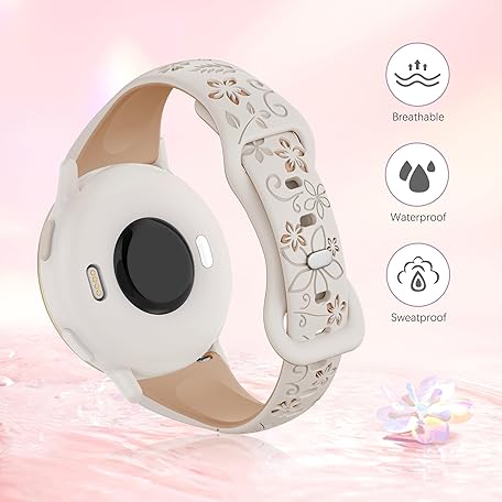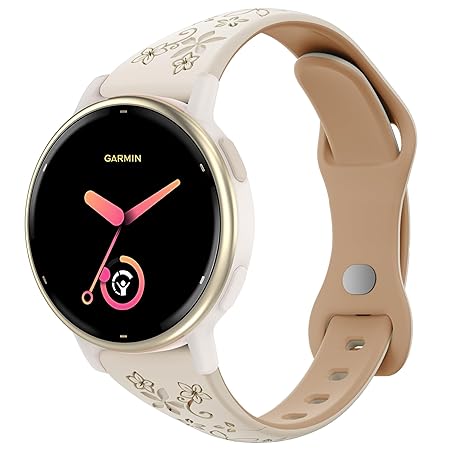 Laband 20mm Floral Engraved Watch Band Compatible with Garmin Vivoactive 6/Vivoactive 5/3/3 Music/Forerunner 570 42mm/165/55/245/645 Music, Soft Slim Silicone Cute Embossed Strap for Venu Sq 2/Venu