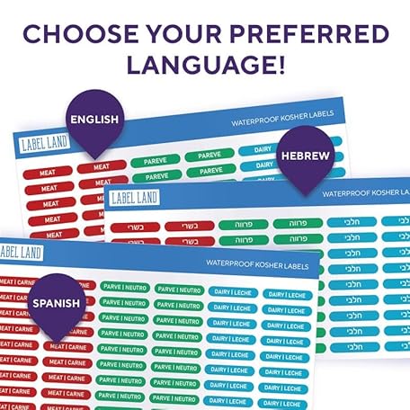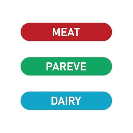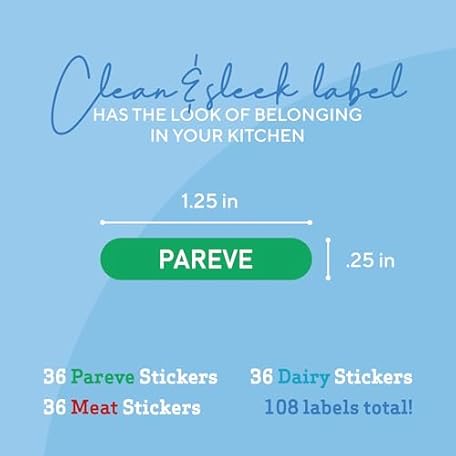 Thông tin sản phẩm Label Land Kosher Sticker Labels, Pack of 108 - Meat, Dairy, Pareve, Color Coded, Dishwasher Safe, Red, Blue, Green, 36 Labels Each