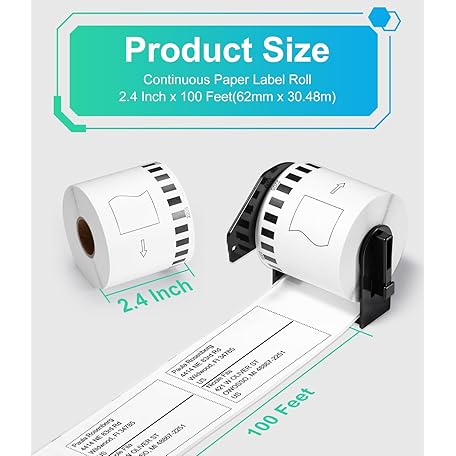 • Labelife Compatible Brother DK2205 (2.4 in X 100 Ft) Continuous Label Tape DK-2205 Shipping Address Labels, for Brother QL-800 QL-720NW QL-810W QL-820nwb Label Printer - 6 White Paper Rolls + 1 Frame