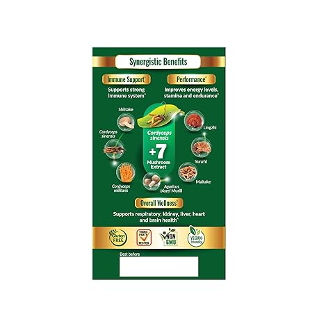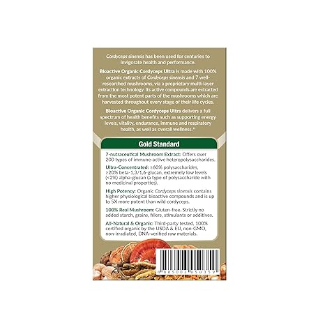 Thông tin sản phẩm LABO Nutrition Bioactive Organic Cordyceps Ultra – 8 Mushroom Extract Supplement, Cordyceps, Reishi, Turkey Tail, Maitake, Agaricus blazei, Shiitake, for Immunity, Energy, Stamina, No Fillers