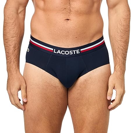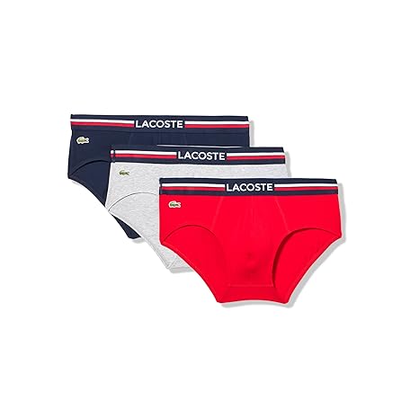 • Lacoste Men's Cotton Stretch Tricolor Waistband Briefs, 3-Pack