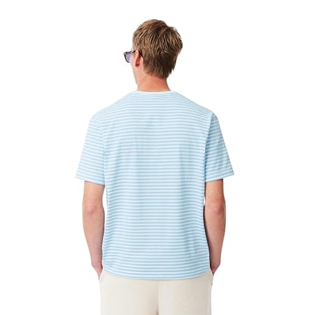 • Lacoste Mens Short Sleeve Classic Fit Stripped Crew Neck Tee Shirt