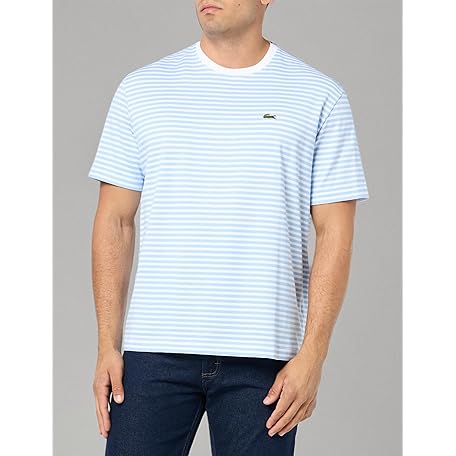 Lacoste Mens Short Sleeve Classic Fit Stripped Crew Neck Tee Shirt