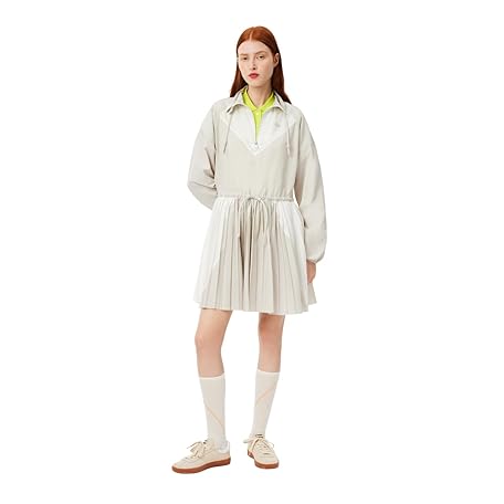 Lacoste Womens Short Relaxed Fit Pleated Sweatshirt Dress