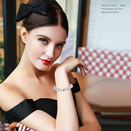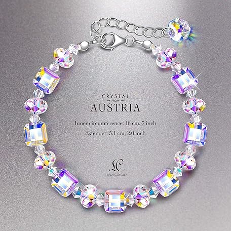 Thông tin sản phẩm LADY COLOUR ♥ A Little Romance ♥ Sterling Silver Bracelets for Women Northern Lights Crystals Bracelet 7"+2" Extension, Packaged with Jewelry Box, Mother's Day Birthday Anniversary Jewelry Gift for Women Girls