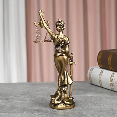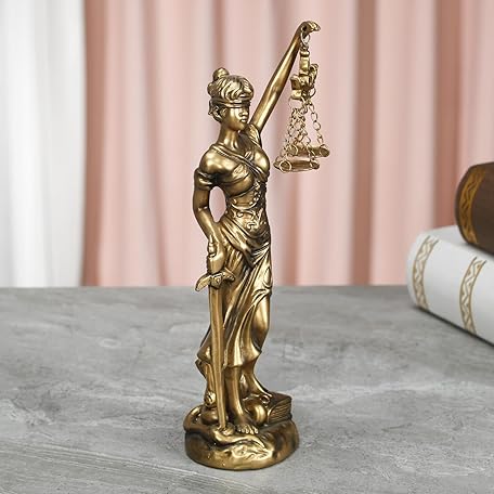 Lady Justice Statue Fairness and Scales of Justice Greek Roman Goddess of Justice Resin Figurine for Home Decor Law Office Decor for Desk Bookshelf Living Room Ideal Gift for Lawyer Friends (Gold)