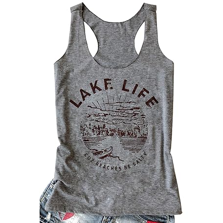 • Lake Life Summer Racerback Tank Tops for Women Funny Lake Vacation Shirt Camis Teen Girls Graphic Workout Tanks Shirt