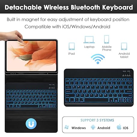 Thông tin sản phẩm LAMA Backlit Keyboard Case with Mouse Set for 12.4 inch Samsung Galaxy Tab S9 FE Plus/S9 Plus/S8 Plus/S7 FE/S7 Plus, Detachable Keyboard with Slim Case & S Pen Holder for Samsung 12.4'', BK