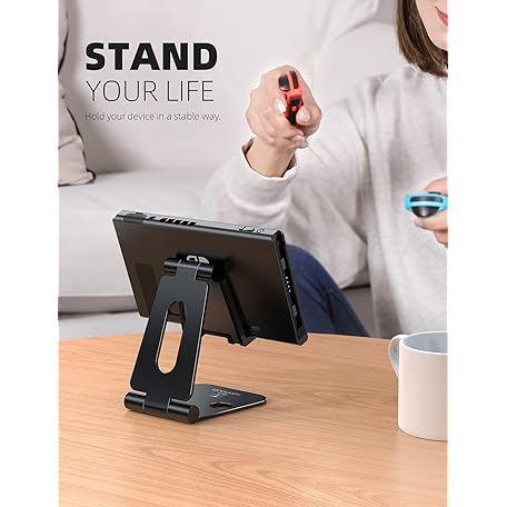 Thông tin sản phẩm Lamicall Adjustable Phone Tablet Stand, Playstand for Switch, Foldable Desk Holder Dock, Compatible with iPad mini, 9.7'' iPad Pro Air, Phone 12 Mini 11 Pro Xs Xs Max Xr X 8 7 6 6s Plus SE (4-10'')