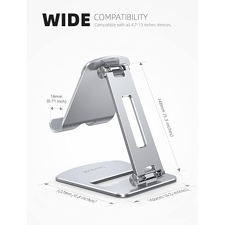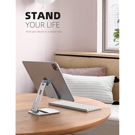 Thông tin sản phẩm Lamicall Adjustable Tablet Stand Holder - Foldable Phone Dock, 360°Rotating Desktop Tablet Mount, for 4.7-13" Tablets, Such as iPad Pro 11, 12.9 Air Mini, Tabs, Kindle, iPhone Air 17 Pro Max, Silver