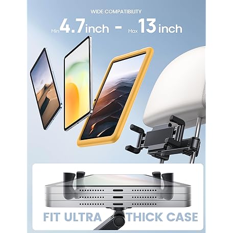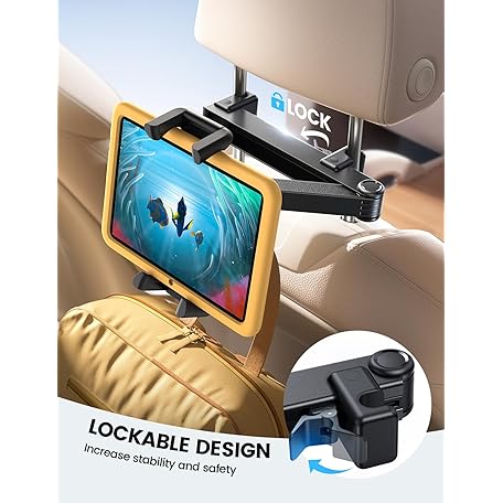 Lamicall Car Headrest Tablet Holder - [Lockable] [Thick Case Friendly] [Foldable Clip] Car Backseat Tablet Mount, Car Accessories for Kids, for iPad Pro, Air, Mini, Galaxy, Fire HD, 4.7-13" Tablets